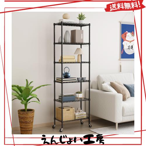 NATRKE メタルラック 6段 ブラック キャスター付き スチールラック スチールシェルフ ワイヤーラック 置物架 大容量 防錆 傷つきにくい