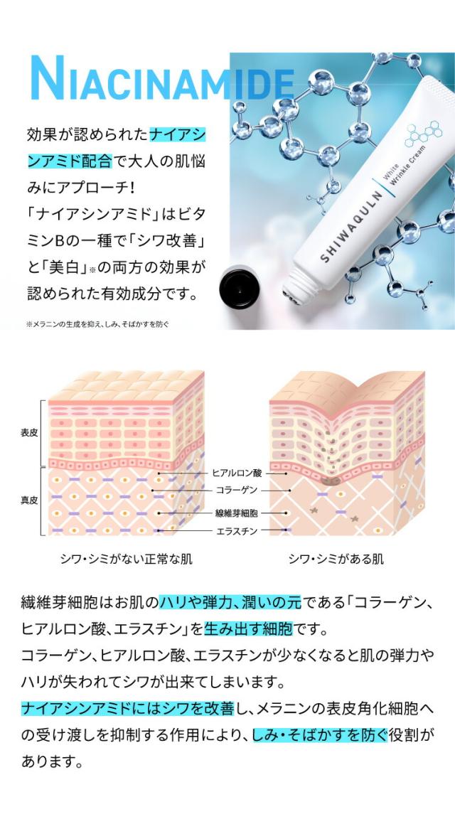 シワ改善クリーム しわ取りクリーム メンズ レディース 男性 女性 しわ消し しわ隠し しわたるみ しわクリーム しわ取り シワクルン 薬用クリーム 医薬部外品 ナイアシンアミド配合 ブライトニング マッサージ シミ対策 美白 CICA成分 スキンケア成分 薬用