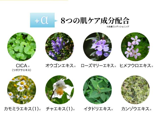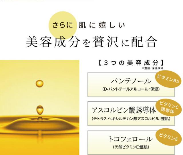 ナイアシンアミドを含む4つのビタミン成分、CICA(※2)成分始めとした8つのスキンケア成分で肌のコンディションを整えます。