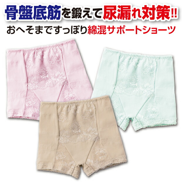 骨盤底筋を鍛えて尿漏れ対策!おへそまですっぽり綿混サポートショーツ