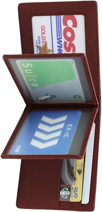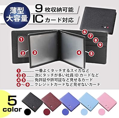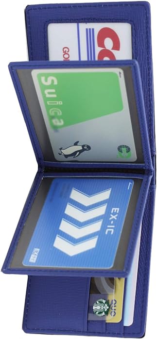 コンパクトでスリムな二つ折りで、9枚収納可能なのに薄型。 薄さにこだわって設計したので、9枚もカードが入るスペースがあるのに、 全てのスペースにカードを入れてもその薄さはほとんど変わりません。スーツの胸ポケットに入れても、 デニムのヒップポケットに入れても、かさばることなく邪魔に感じません。