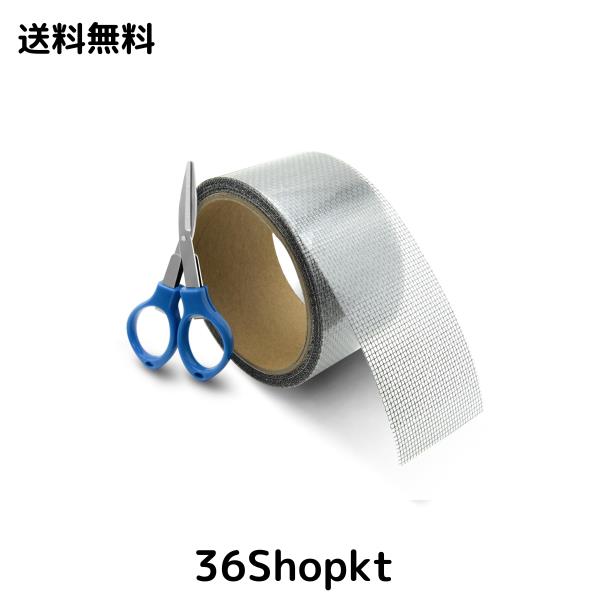 【セット内容】網戸補修テープ×1枚 + ハサミ×1個 、サイズ:約幅5cm×全長5m。色:グレー