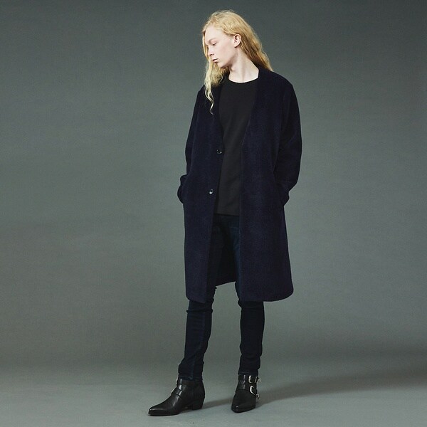 ノーカラー シャギー コート
