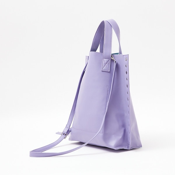 フェイクレザーにカラー生地を貼り合わせた軽量トート。