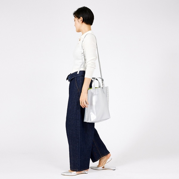 シンプルに肩掛けでのコーディネートで大人っぽくも、手持ちでレディな雰囲気にも持っていただけます。