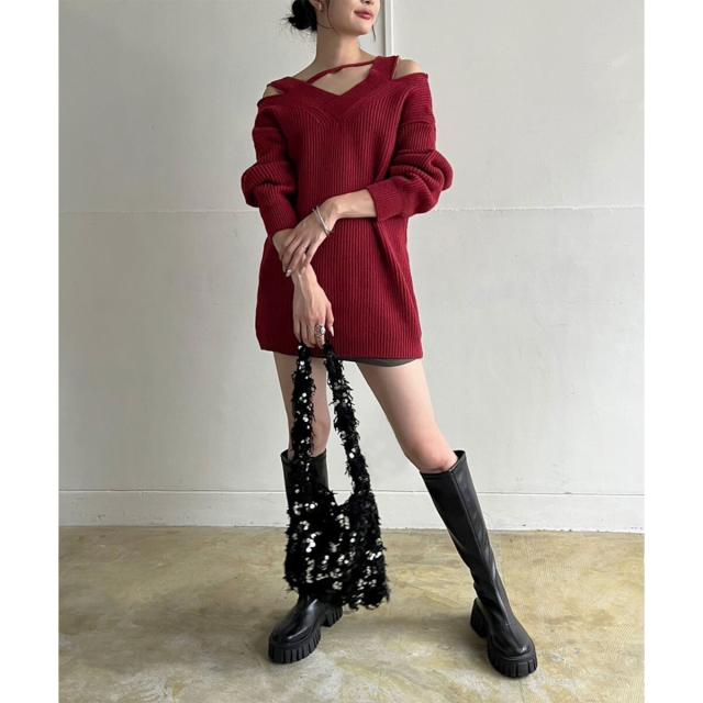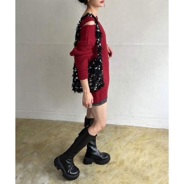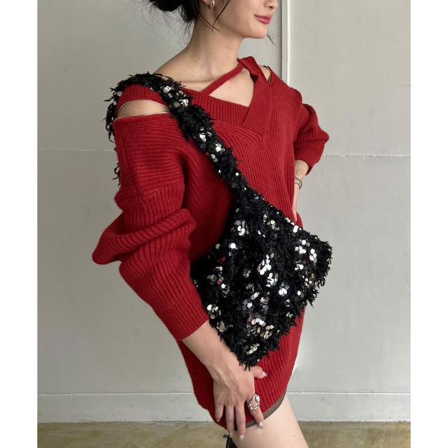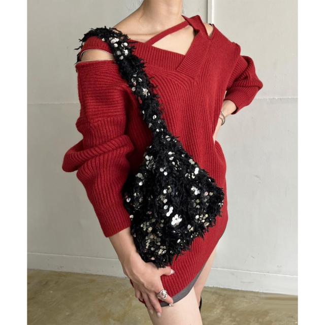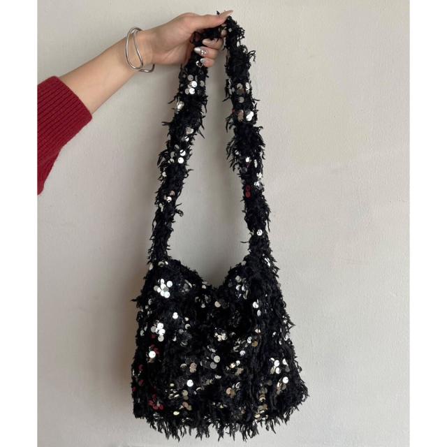 フェザー×スパンコールショルダーミニバッグ