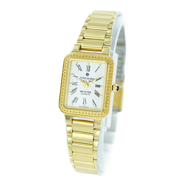 Junghans ユンハンス 腕時計 手表 レディース MEISTER QUARTS マインスター クォーツ レトロ アンティーク調 小ぶり 小さい時計 白 ローマ数字 ゴールド 金 JE-110L 誕生日プレゼント 成人 卒業 入学