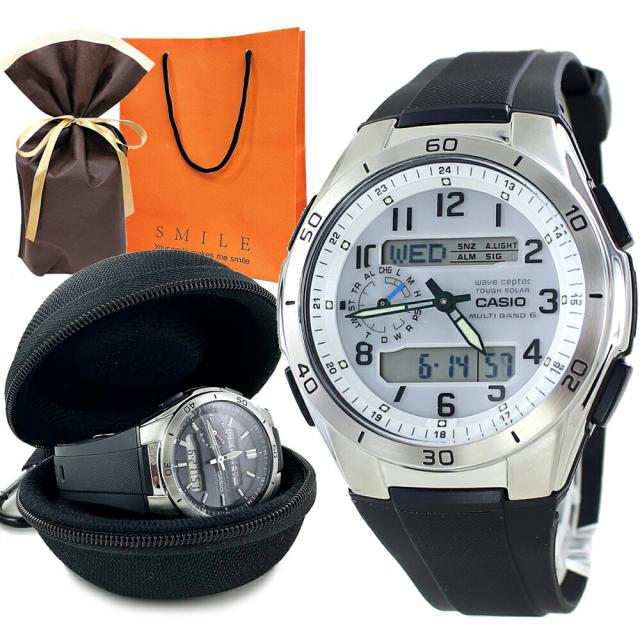 ラッピング済 男性 ギフトセット カシオ ウェーブセプター メンズ 電波腕時計 携帯 収納ケース付き 誕生日 記念日 受験 入学 退職 還暦 父の日 プレゼント おすすめ 見やすい 文字盤 レジャー用 海外旅行 防水 釣り アウトドア 国内正規品 CASIO