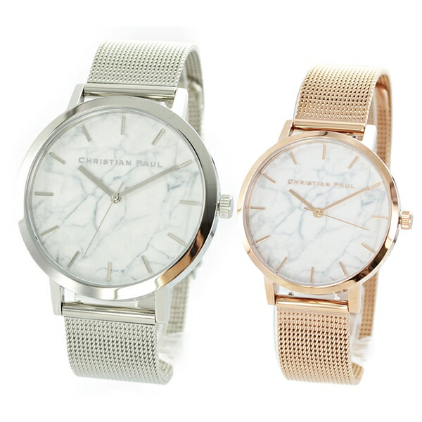【無料特典付き!】クリスチャンポール 時計 ペアウォッチ 43mm 35mm ホワイトマーブル 大理石柄 シルバー ローズゴールド MRM-03MRML-02 誕生日プレゼント 成人 卒業 入学