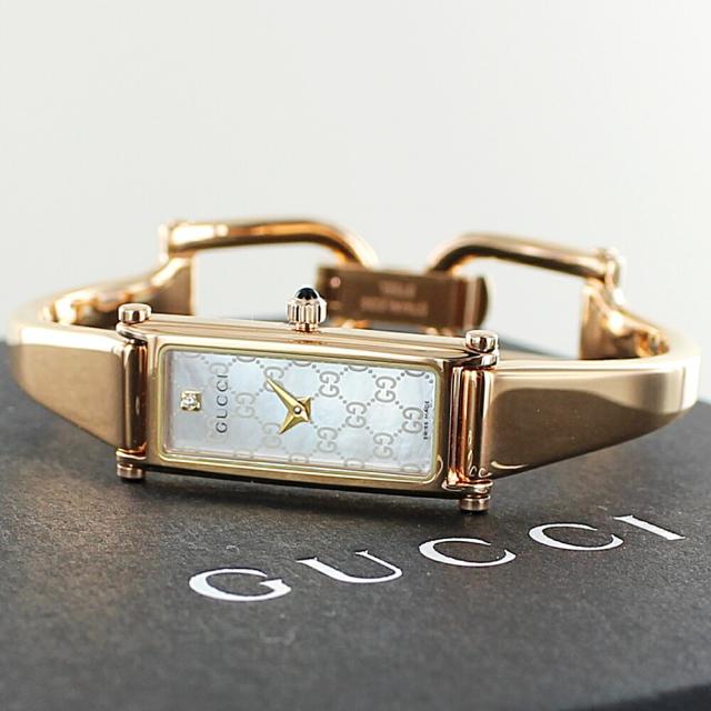 女性 プレゼント 腕時計収納ケース 付き グッチ 腕時計 レディース グッチ時計 1500 ブランド おしゃれ バングルウォッチ 誕生日 記念日 ダイヤモンド ピンクゴールド ホワイトパール gucci