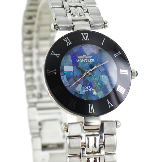 モントレス 腕時計 手表 レディース 天然石 オパール 文字盤 青 ステンレス シルバー ブレスレット 時計 小さめ レトロ クラシック 彼女 妻 母親 祖母 叔母 プレゼント 結婚式 誕生日 記念日 ギフト 成人 卒業 入学