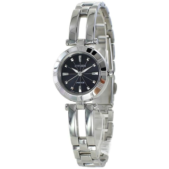 シチズン ウィッカ ソーラー 小さい かわいい スタイリッシュ 仕事 プライベート お洒落 レディース 腕時計 手表 シルバー ブラック文字盤 ブレスレットウォッチ CITIZEN WICCA 時計 記念日 成人 卒業 入学