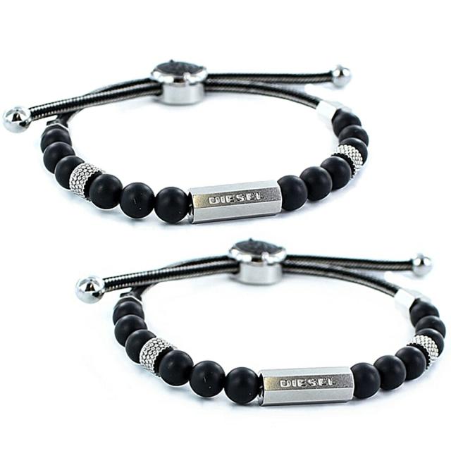 ペア ブレスレット ディーゼル ペアブレスレット ブランド おしゃれ お揃い シンプル ブラック 数珠タイプ ペアアクセサリー ペアギフト 大人 ペアルック 成人 卒業 入学