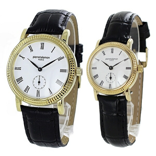 ピエールタラモン 時計 メンズ レディース ペアウォッチ 38mm 28mm ブラック クロコ レザー ゴールド PT-5100H-2PT-5100L-2