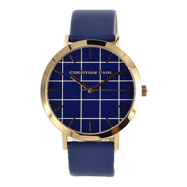 クリスチャンポール メンズ レディース 腕時計 手表 43mm グリッド 格子柄 チェック ローズゴールド ブルーレザー 青色 天然皮革 GR-07 誕生日プレゼント 成人 卒業 入学