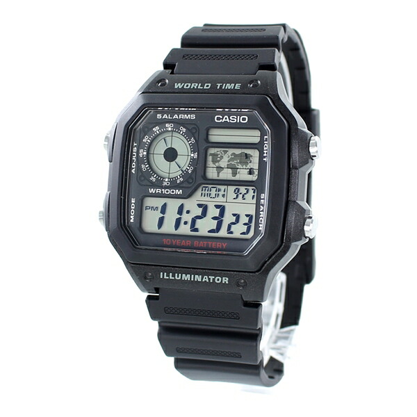 カシオ スタンダード 腕時計 手表 メンズ レディース 逆輸入 チプカシ 多機能 デジタル 軽量 防水 レトロ オールブラック AE-1200WH-1A ブランド 誕生日プレゼント 成人 卒業 入学
