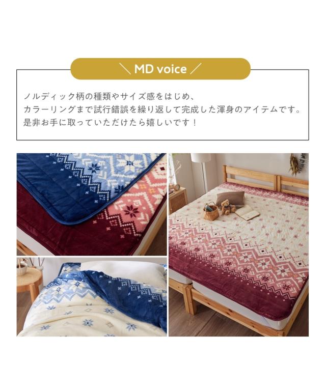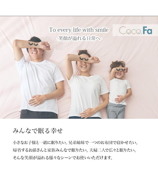 北欧感じるノルディック柄 北欧を象徴する雪の結晶が入ったノディック柄。北欧インテリアにも馴染みやすく、お部屋のポイントになります。 こちらは当社オリジナル商品です デザインにこだわりながらも、使いやすさも徹底的に追求しました。 手に取っていただいたお客様の暮らしをより豊かにしたいという想いの詰まった商品です。 MD voice ノルディック柄の種類やサイズ感をはじめ、カラーリングまで試行錯誤を繰り返して完成した渾身のアイテムです。 是非お手に取っていただけたら嬉しいです。 家族で使えるファミリーサイズ 家族みんなで眠れる幅200cm(シングルサイズ2枚分)〜の大きなサイズ。一般的なシングルベッド2台を1枚で覆えるので、ベッドを並べても隙間ができず、快適。3人用からご用意しており、小さなお子様たちと一緒に就寝いただけます。 【こんな方におすすめ】 ・小さなお子さまがいるご家庭 ・大きなベッドでも寝心地にこだわりたい方 ・一度で複数分の洗濯を済ませたい方 【ブランド紹介】 Coco.Fa ココファ 毎日の生活に寄り添う素材と価格にこだわったオリジナルファミリーサイズの寝具ブランド。 何気ない会話も、あの頃は楽しかったねと