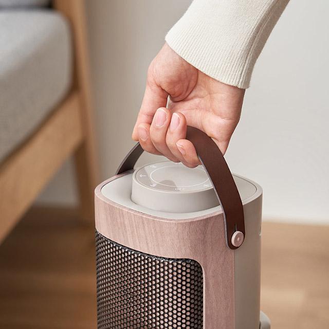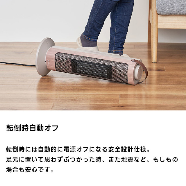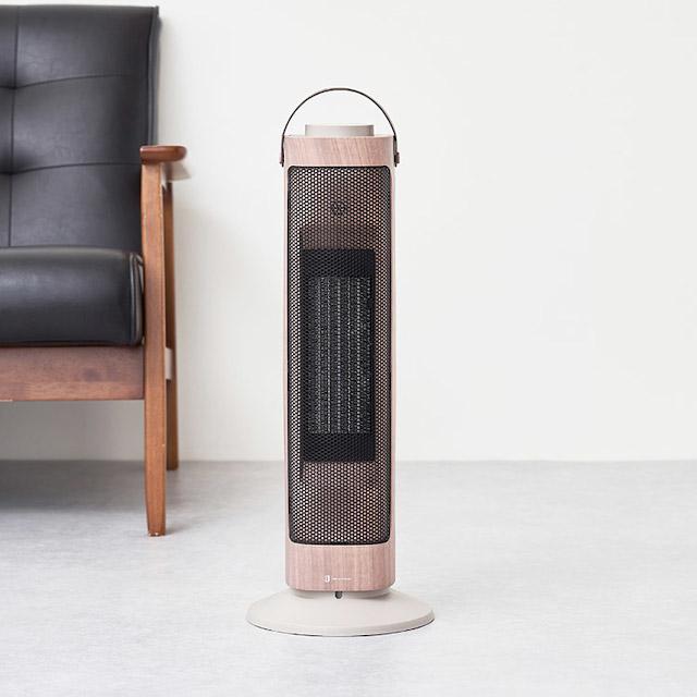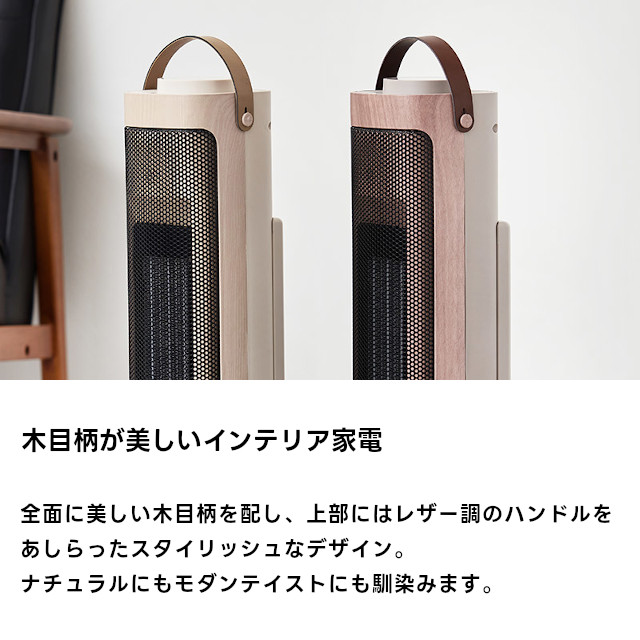 木目柄とレザー調ハンドルがおしゃれな、見せ置きできるヒーター。