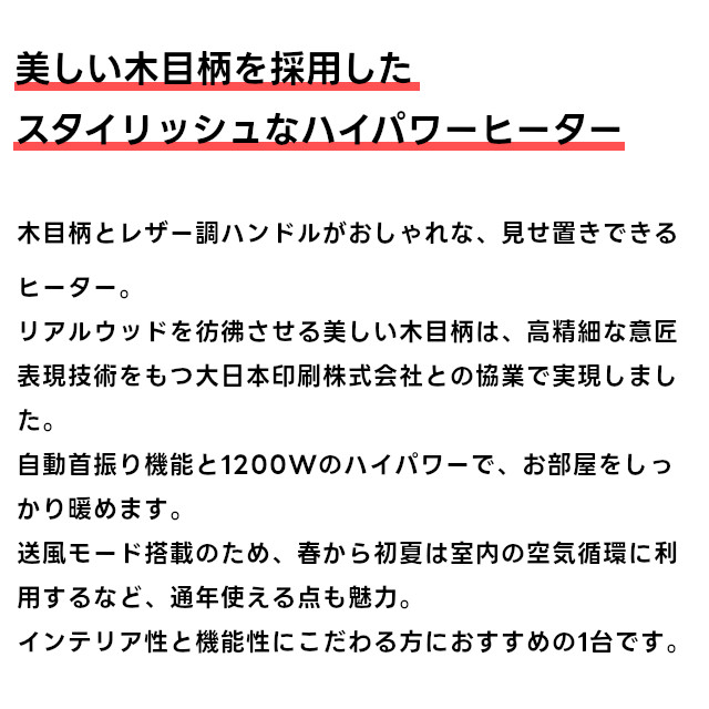 美しい木目柄を採用したスタイリッシュなハイパワーヒーター |