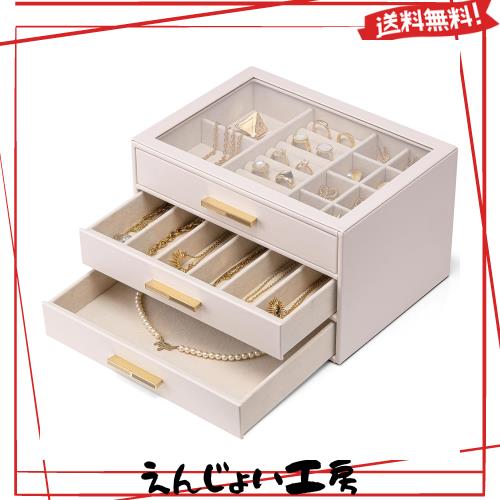 Vlando ガラス蓋 3段引き出し ジュエリーボックス 女性用ジュエリーボックス ネックレス 指輪 イヤリング ブレスレット アクセサリー収納