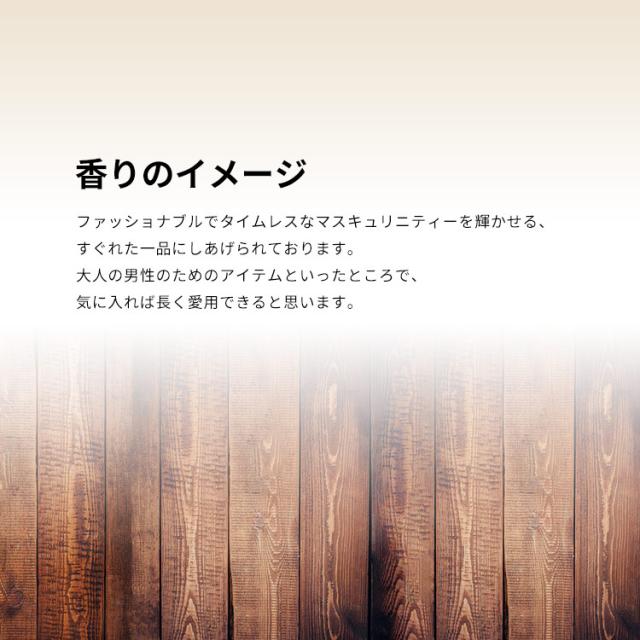 大人の男性のためのアイテムといったところで、気に入れば長く愛用できると思います。ボトルやボックスも見事なデザイン。ウッディーなキャップがステキです。