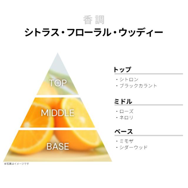 シトロンやブラックカラントなどが、明るいシトラス・フルーティーを香り立たせるトップから、