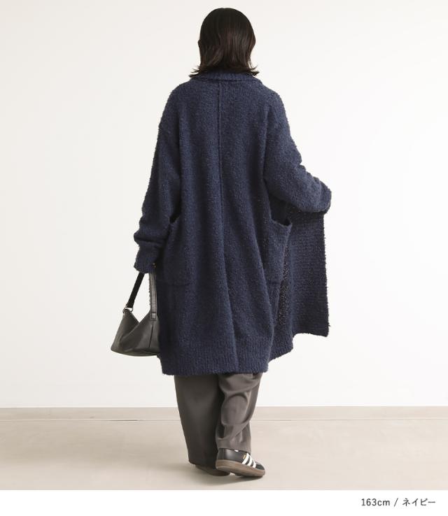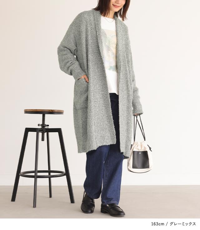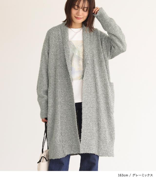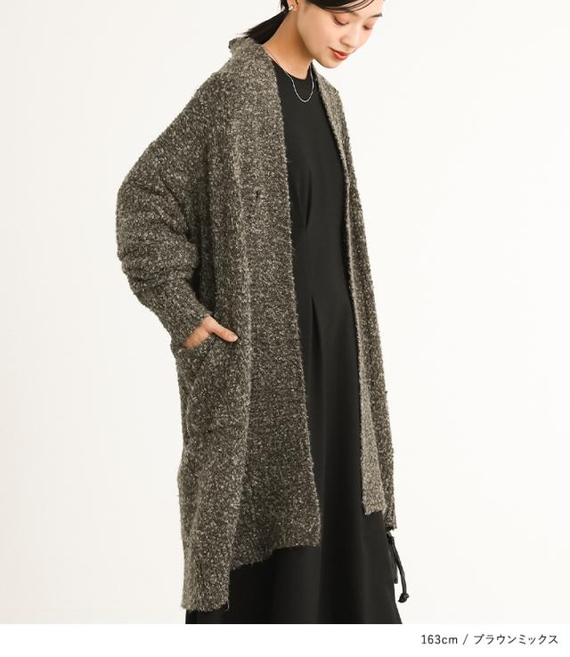 『ブークレニットコーディガン』【メール便不可】【40】[ニット コーデガン レディース トップス カーディガン ロングカーディガン 長袖 ブークレニット 羽織 ライトアウター 帯電防止 ボタン付き]