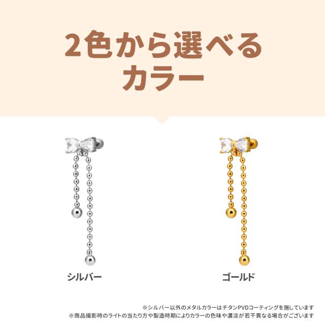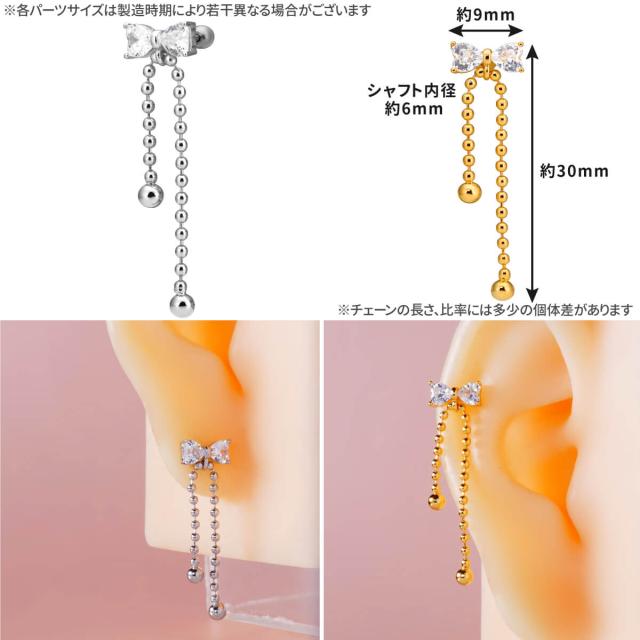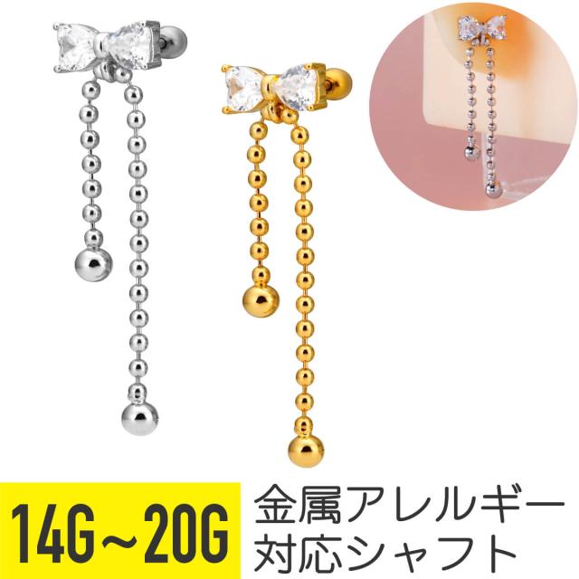 リボン ジュエル ボール チェーン ストレートバーベル 14G 16G 18G 20G サージカルステンレス ヘリックス 軟骨ピアス ボディピアス