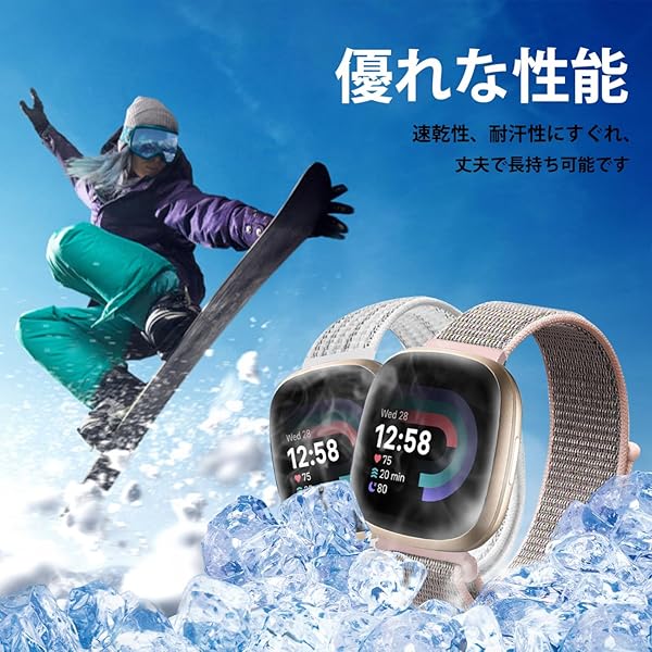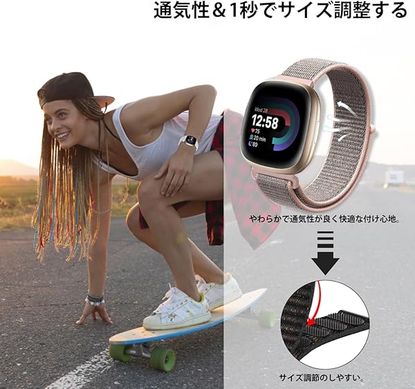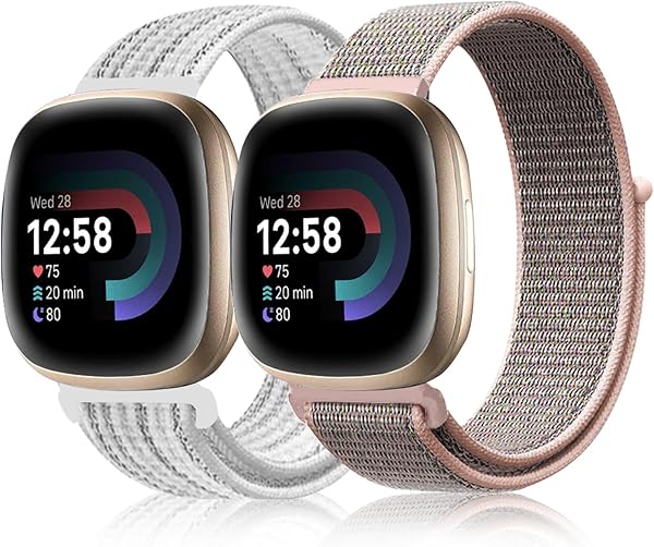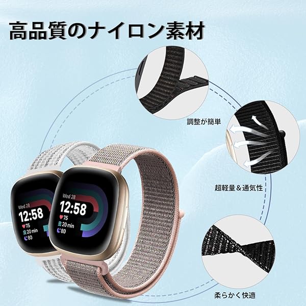 Fitbit Versa 4 / 3 バンド 交換バンド ナイロン製 替えベルト ストラップ 通気 軽量 ソフト Fitbit Versa 4 / 3 / Fitbit Sense 2 / Sense 用 バンド [2色セット] ホワイト+ピンク