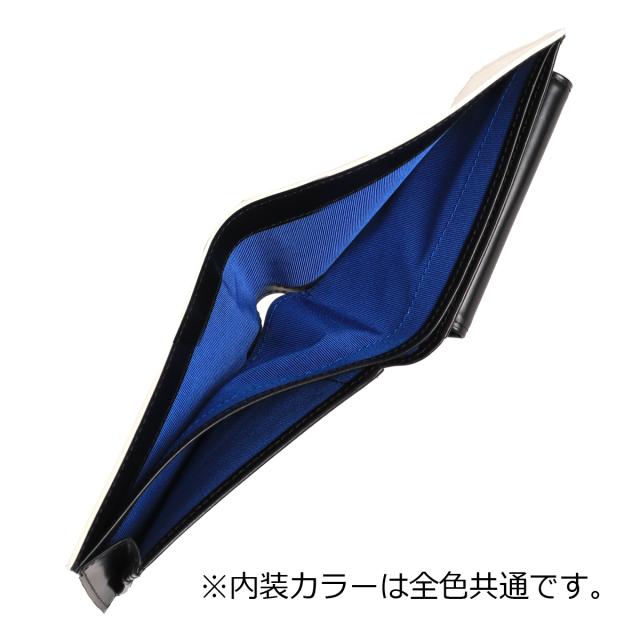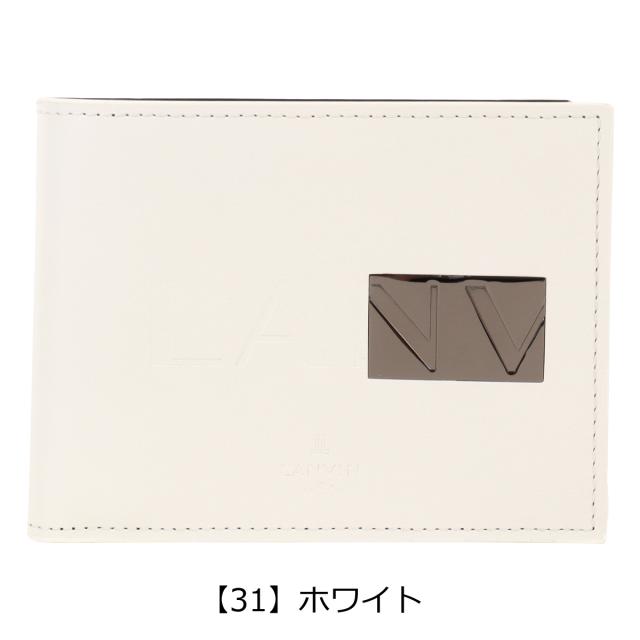 プレートと本体に押されたブランドロゴが繋がったように表現したモードなランバンオンブルーの二つ折り財布。プレートをあえて大きめにすることで全体のワンポイントにもなり、シンプルベーシックな中にも上品さを演出してくれています。