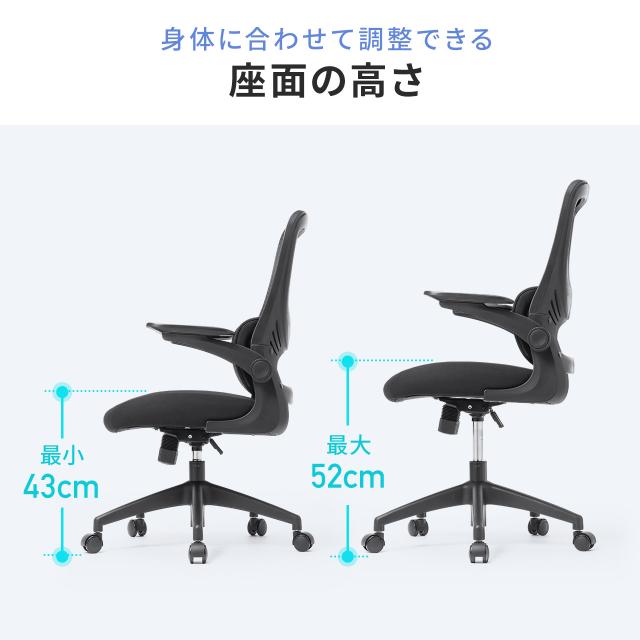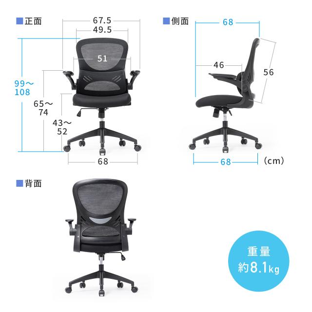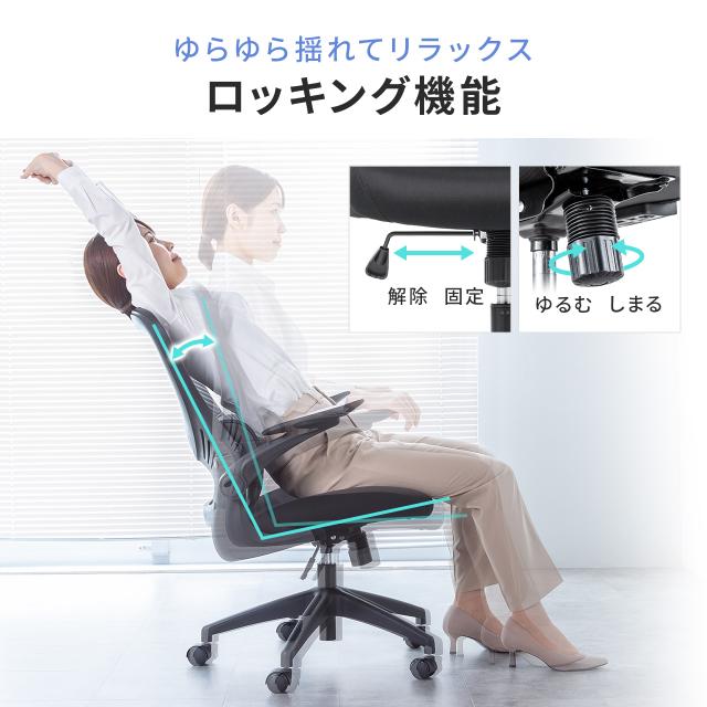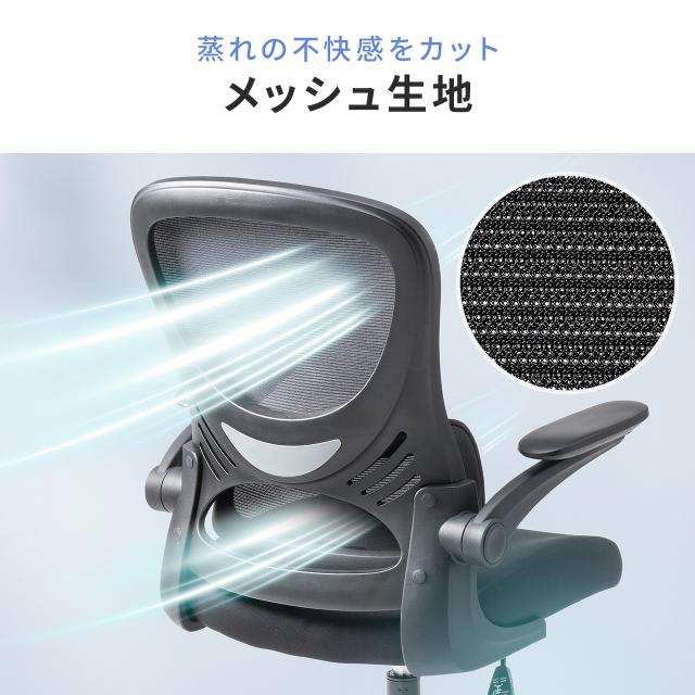 メッシュチェア オフィスチェア 背もたれ分離式 ロッキング 肘跳ね上げ ミドルバック ランバーサポート キャスター付き[150-SNCM41]