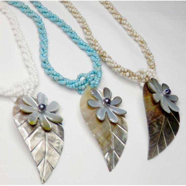 ハワイアン タヒチアン リーフ シェル ネックレス フラダンス ビーズネックレス 貝