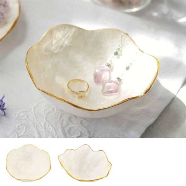 ゴールドのフチに透明感あるシェルの輝きが素敵なトレイ。