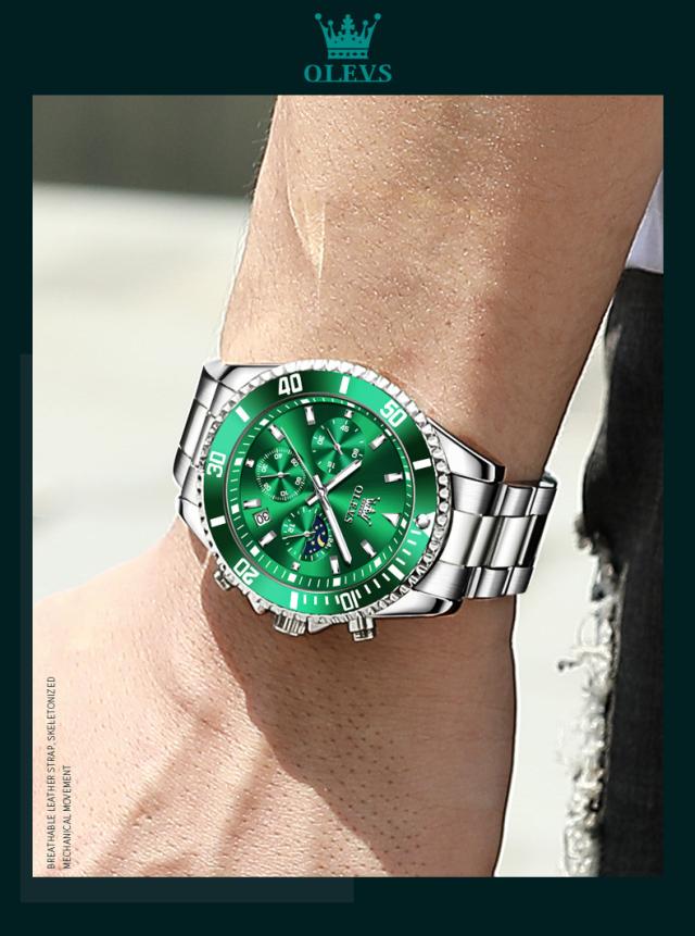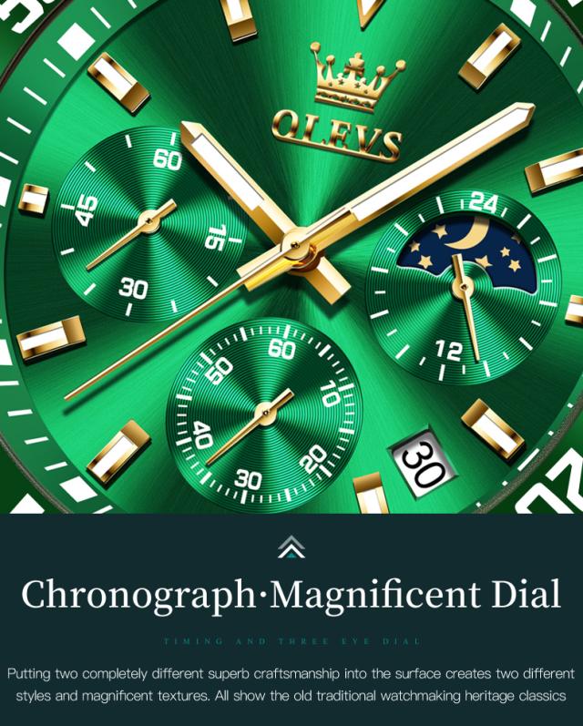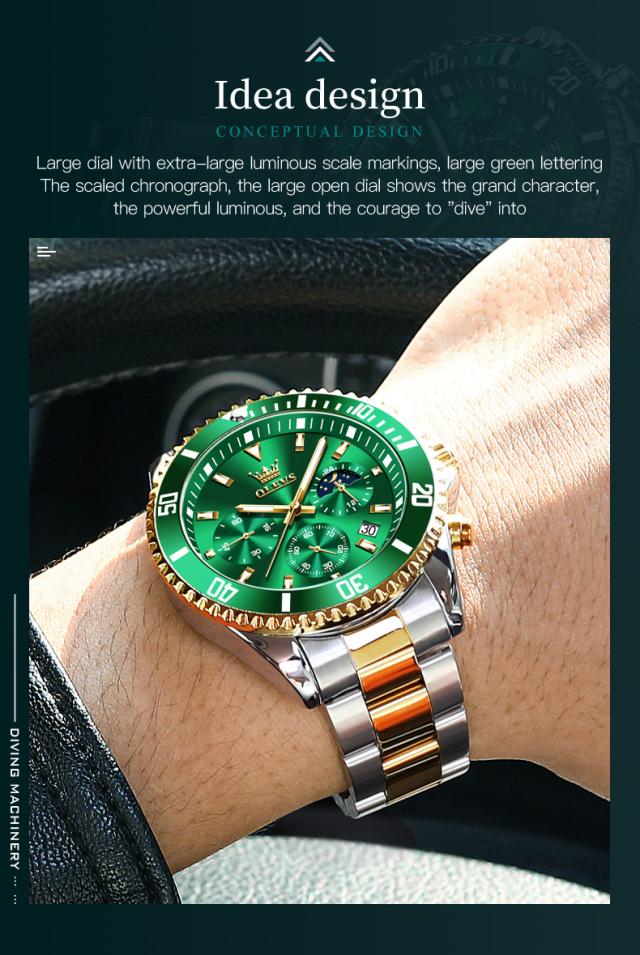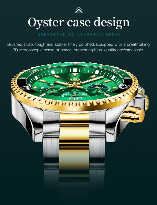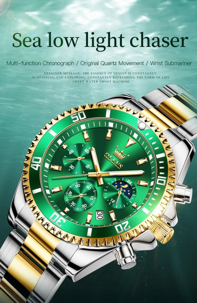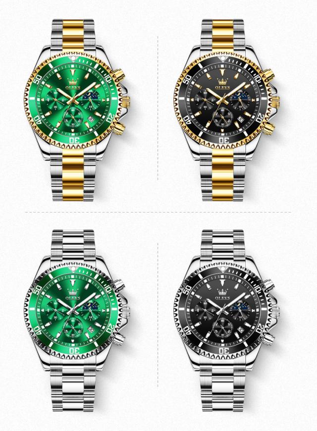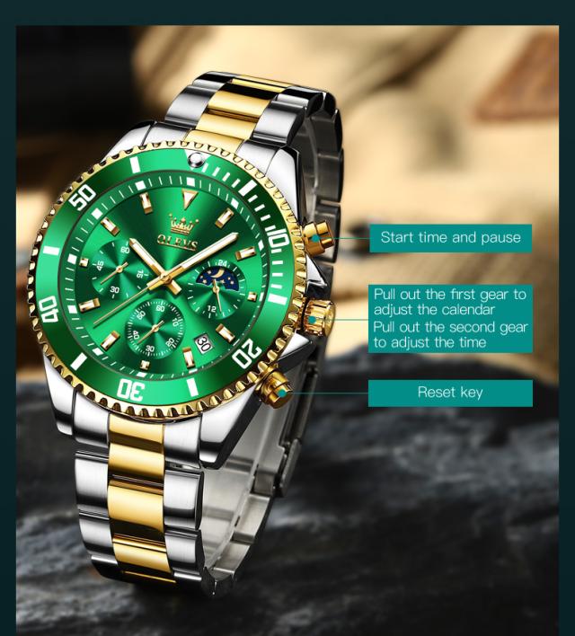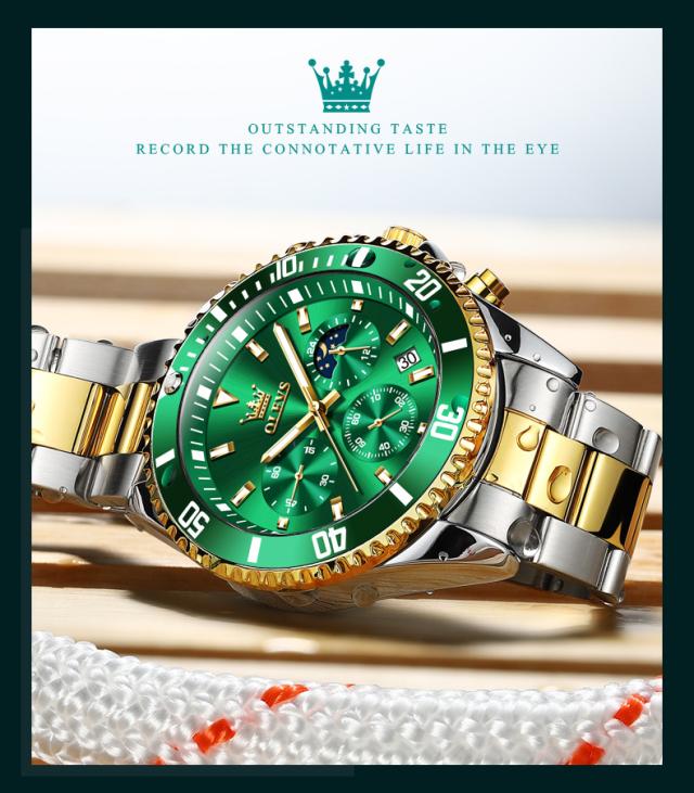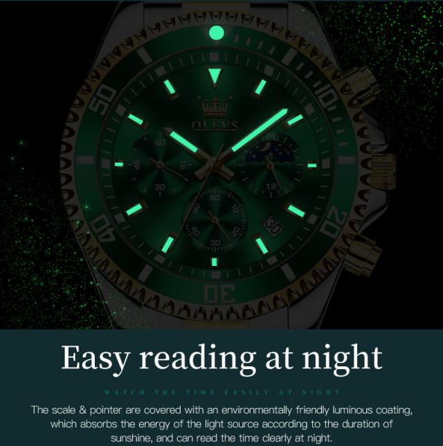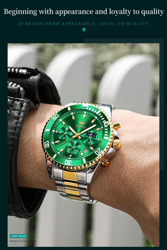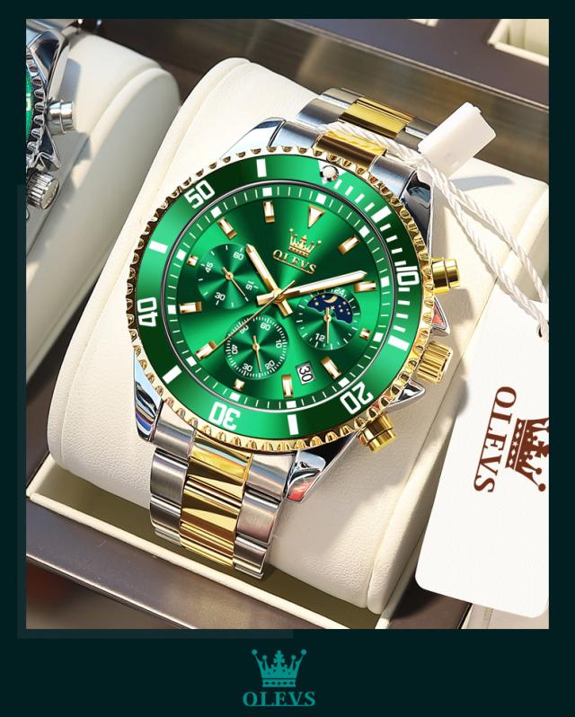 Olevs-メンズラグジュアリーゴールドクォーツ時計、ミリタリー腕時計、防水、発光、ステンレス鋼、クロノグラフ、時計、トップブランド