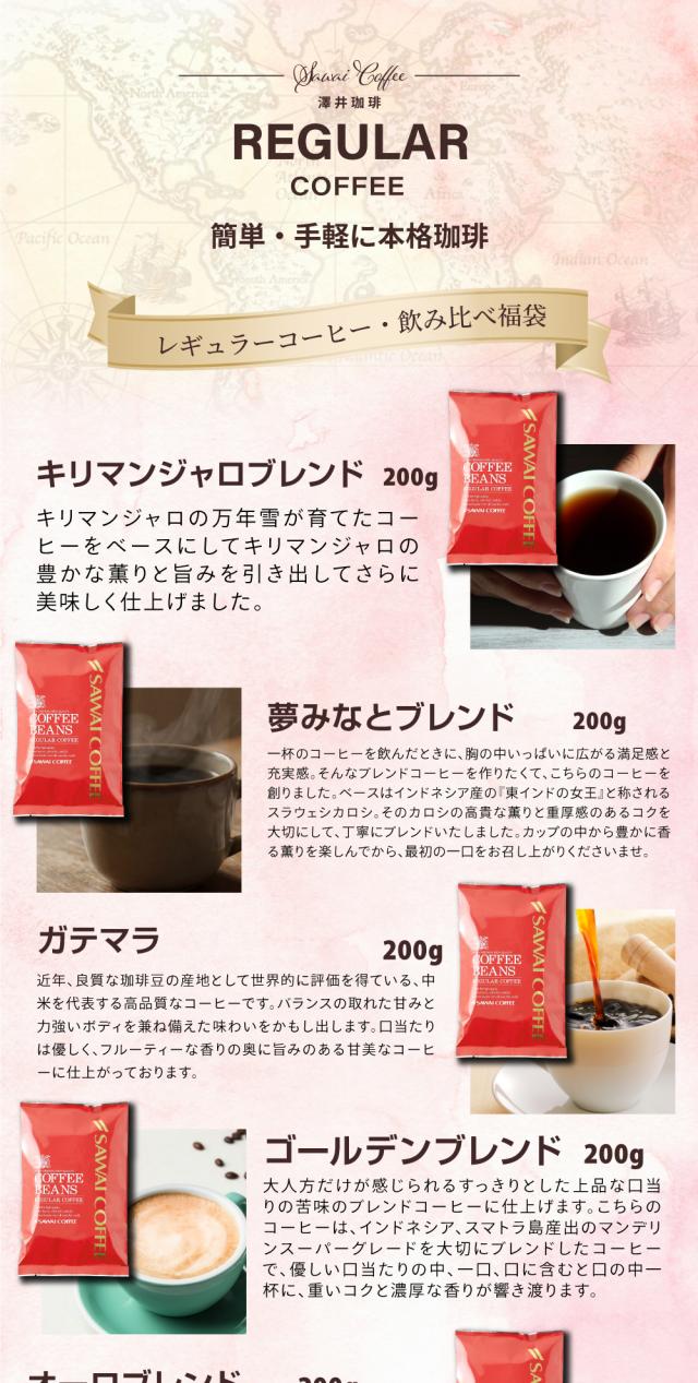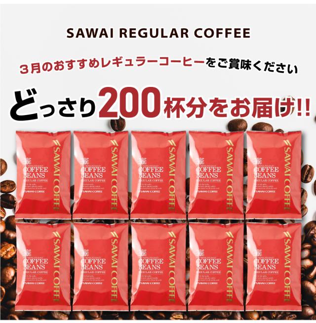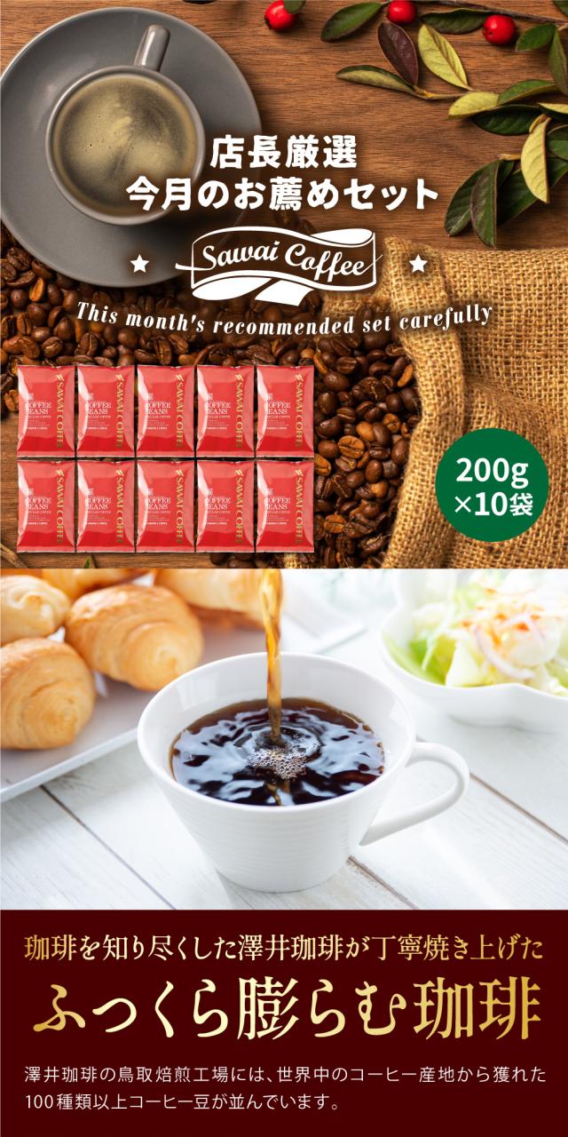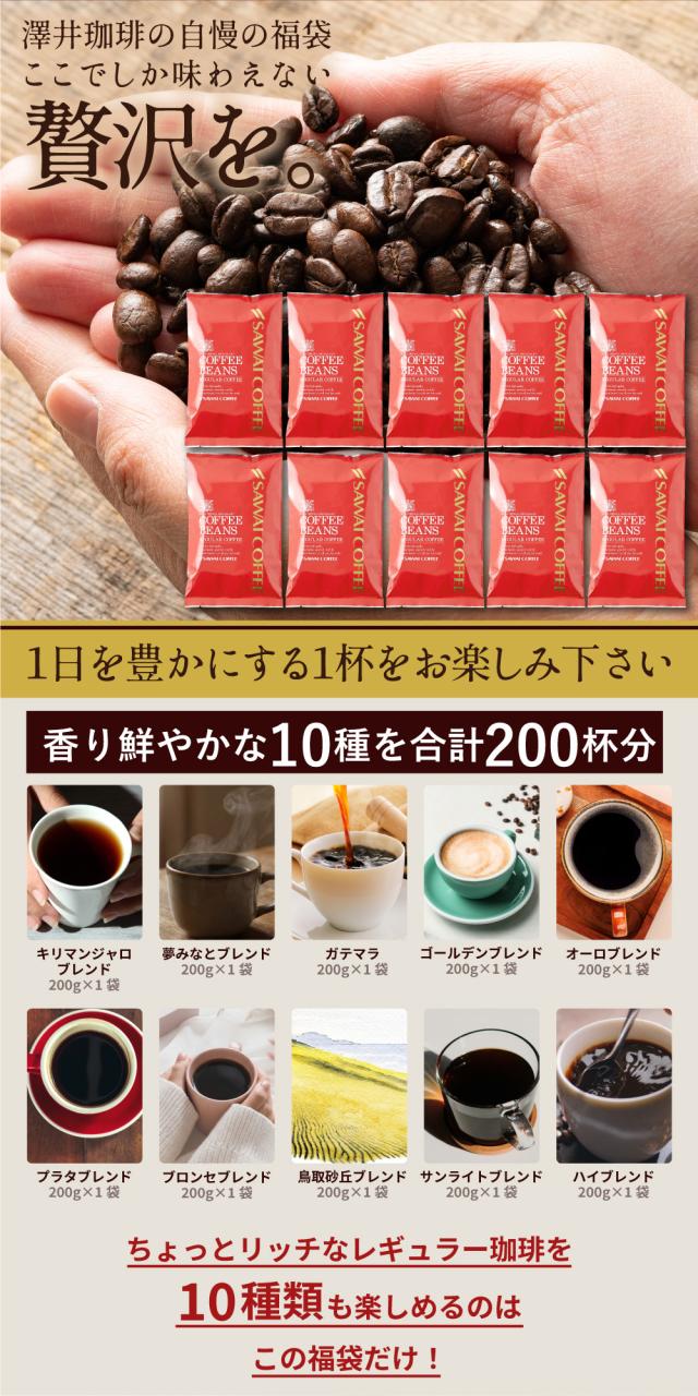 3月のおすすめレギュラーコーヒー 200杯分 飲み比べ セット 焙煎したて コーヒー豆 2kg 珈琲豆 送料無料 コーヒー 福袋 大容量 200gx10袋 中挽き/豆のまま コーヒー専門店 澤井珈琲