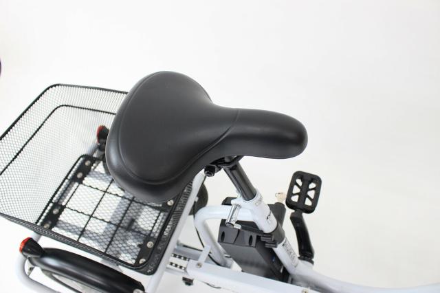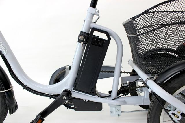 >>>>>両足が地面につくので安心して乗車できるロータイプ電動アシスト付き三輪自転車