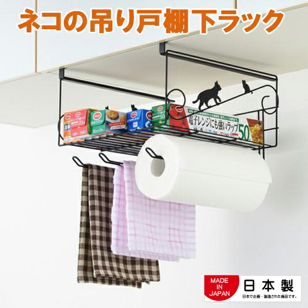 【ネコの吊り戸棚下ラック】ヨシカワ 吊戸棚下 ラック スチール 引っ掛ける 棚下収納 吊り下げラック ペーパーホルダー タオルホルダー ラップホルダー ふきん掛け 猫グッズ 雑貨 日本製 sl