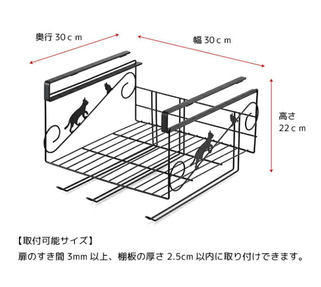 取付可能サイズ: 扉のすき間3mm以上、棚板の厚さ2.5cm以内に取り付けできます。