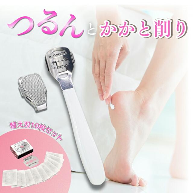 【かかと 角質リムーバー(替え刃10枚付き)】【メール便 送料無料】 かかと 角質除去 ブレード カッター 魚の目 やすり ヤスリ 角質ケア フットケア つるつる 魚の目カッター リムーバー ベビーフット 角質スクラッチ ホワイト 白 pk
