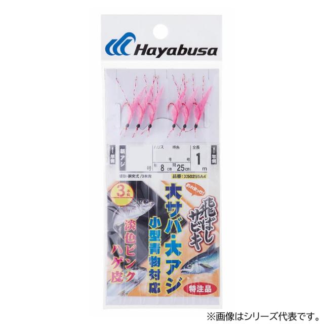 ハヤブサ 飛ばしサビキ(3本針)ピンクハゲ皮アミエビ 浜田商会オリジナル (サビキ仕掛け 釣り)
