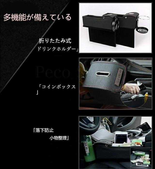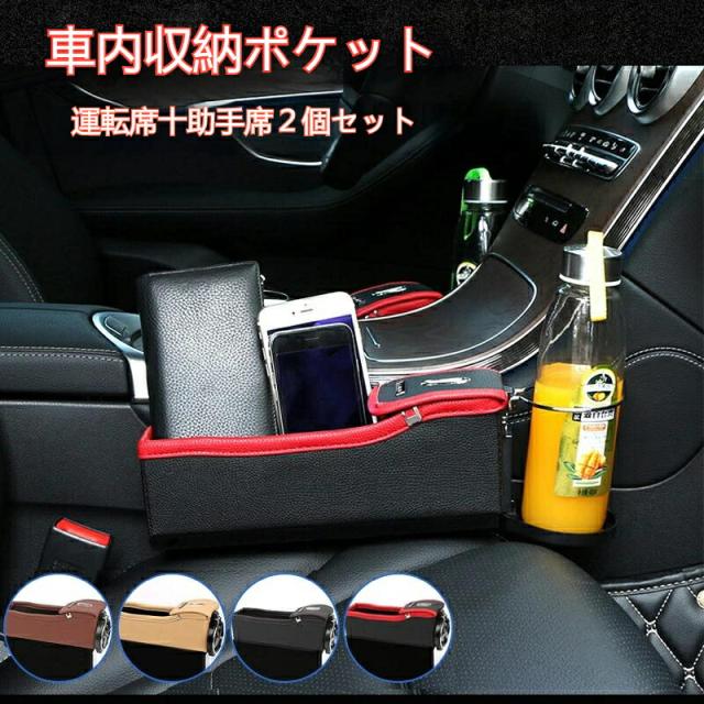 運転席+助手席2個セット 車用収納ポケット 隙間ポケット ドリンクホルダー コイン収納 スマホホルダー 車内収納 車内用品 カー用品 小物整理 落下防止 車 便利 コンソールボックス 小物収納 ミニポ