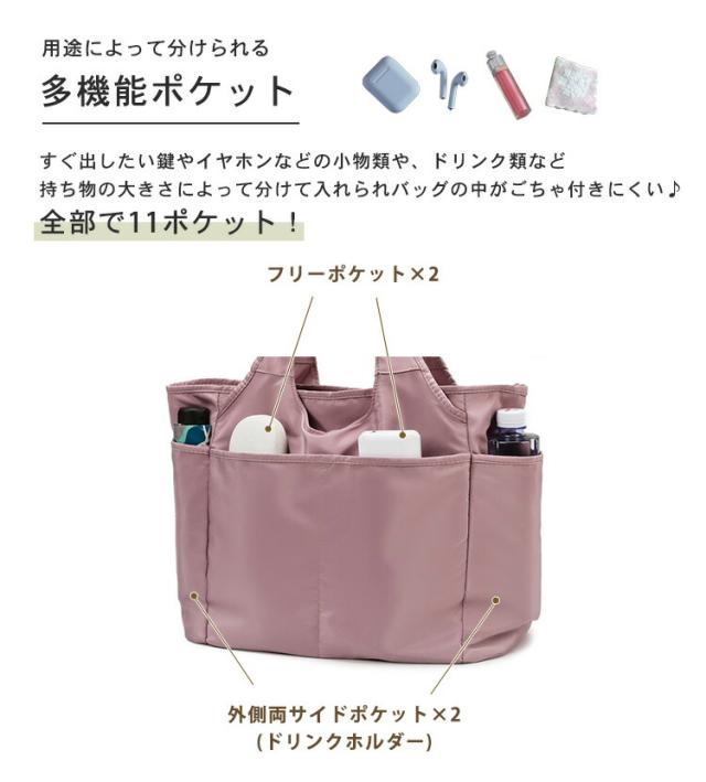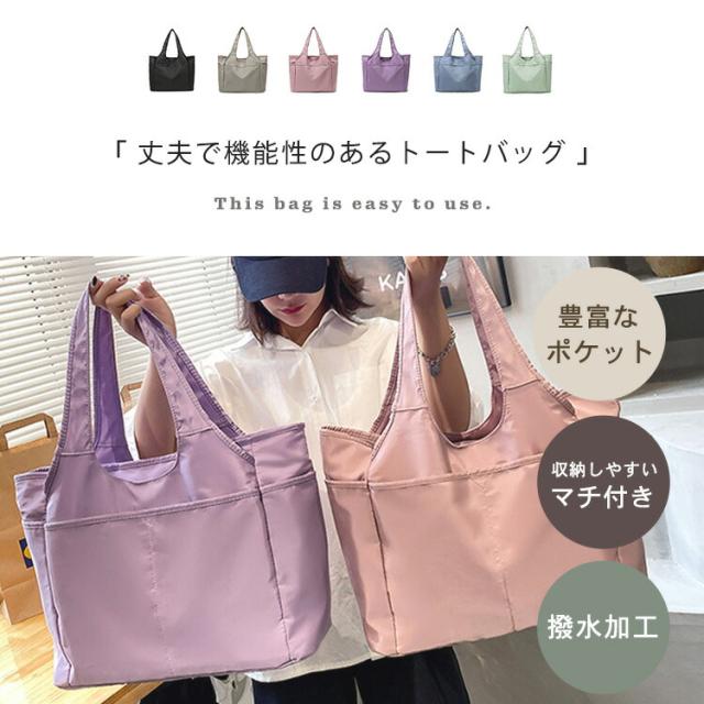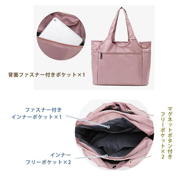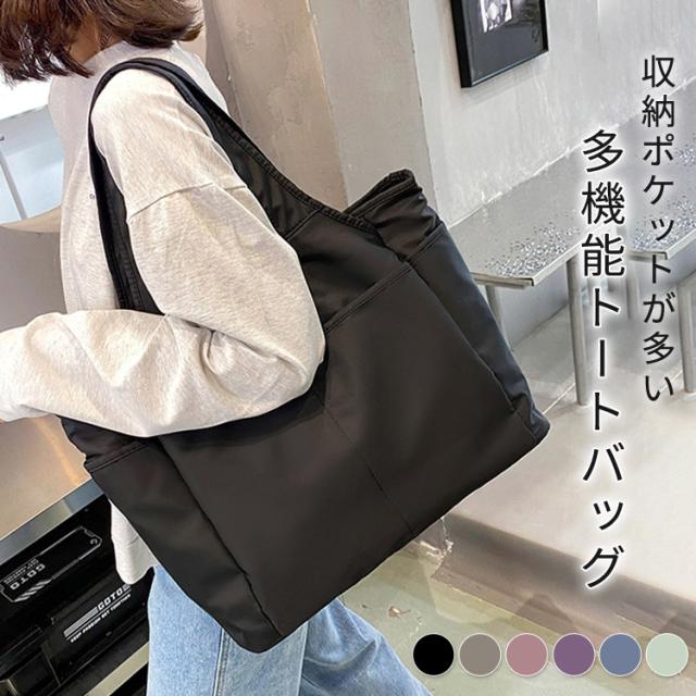 ポケットが11個もあって整理整頓しやすい便利トート♪ ナイロンバッグ 鞄 カバン バッグ 女性 無地 ポケットたくさん ポケット多い 傷に強い ドリンクホルダー 出張 入院 病院