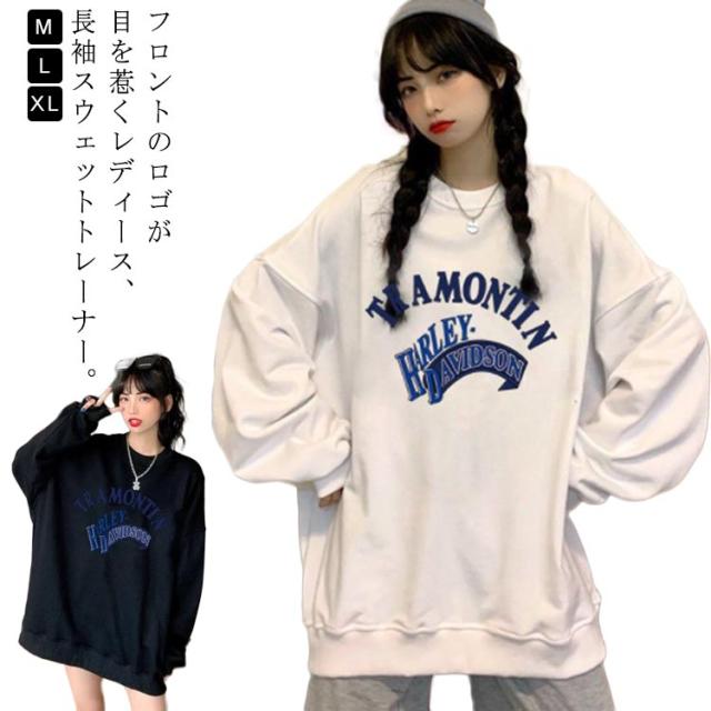 トレーナー レディース トップス 長袖Tシャツ 大きいサイズ ロゴ スウェット オーバーサイズ 春レディースファッション トップス スウェット トレーナー