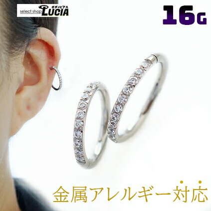 【即日出荷】16G ピアス ボディピアス リングピアス ラインストーン ワンタッチピアス クリッカーセグメントリング 金属アレルギー対応 G23 軟骨