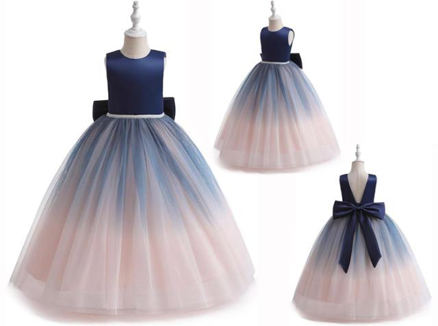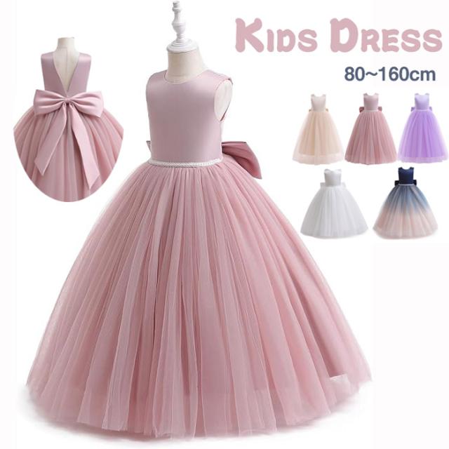 ピアノ発表会 ドレス 中学生 女の子 キッズドレス 子供服 ロング丈 ガール 子供ドレス ノースリーブ リボン 演奏会 紺 白 ピンクフラワーガール ベールガール グラデーション リングガール プリンセスドレス ブライダル フォーマル 七五三 可愛い お姫様80 90 100 110 120 130 140 150 160 dt625c0c0m5