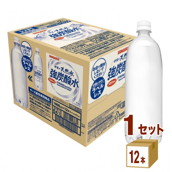 【送料無料】サンガリア 伊賀の天然水 強炭酸水 ラベルレス 1000ml 12本(1ケース) 1L 炭酸飲料 国産 ペットボトル 無糖 割材 ソーダ 割り材 まとめ買い 飲料