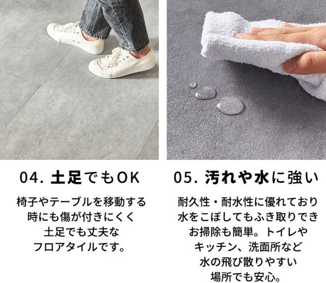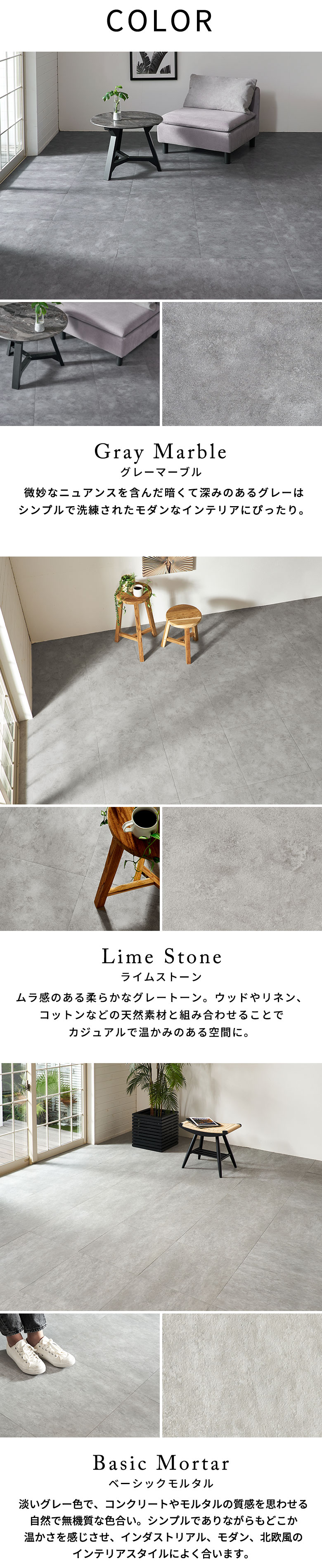 裏面は粘着性があり、シールのように床にペタッと貼るだけ。DIY初心者の方も気軽に扱えます。