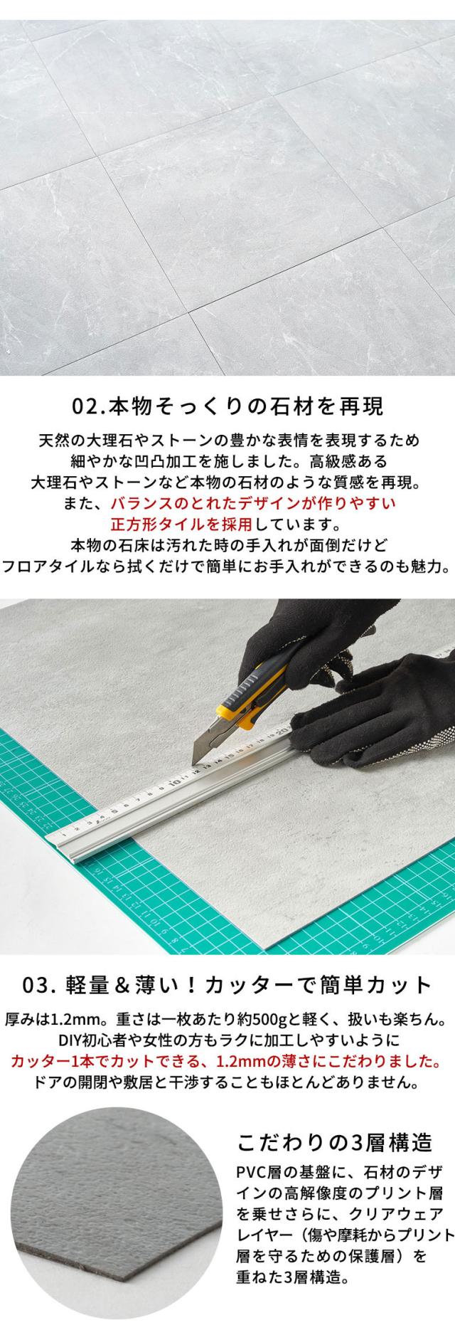 台紙をはがしてペタっと床に貼るだけのシール式だから、軽くて施工も簡単。