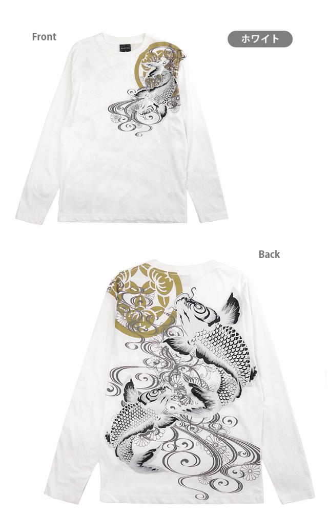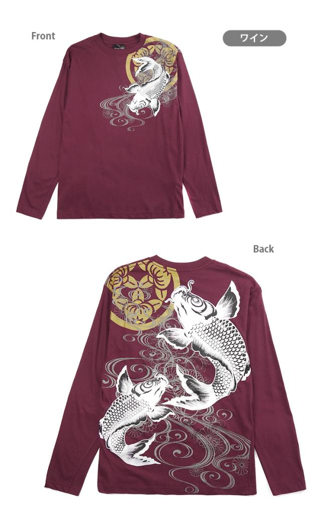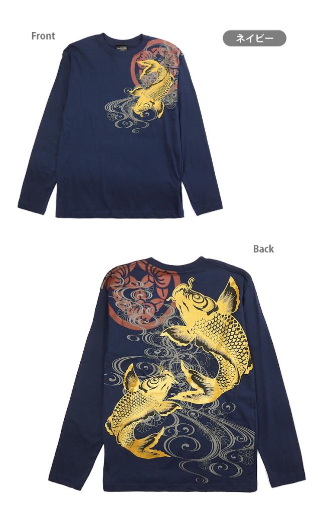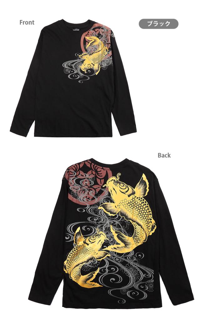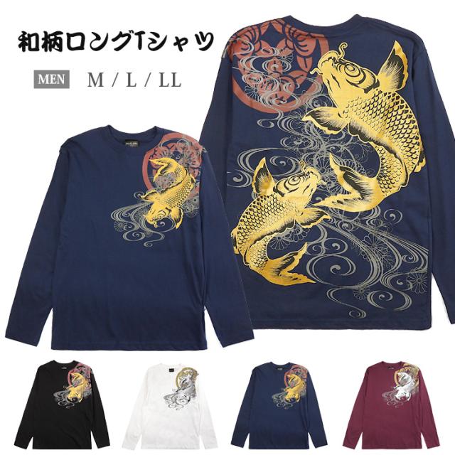 【メール便送料無料】【大きいサイズあり】和柄 長袖 Tシャツ M L LL 綿100% メンズ 男性 紳士 和風 和風 鯉 菊 ゴールド シルバー No.2715