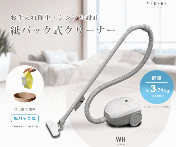 ベルソス 掃除機 クリーナー 紙パック式 キャニスター型 コード式 各社共通紙パック対応 キャニスター掃除機 紙パック式掃除機 紙パック式クリーナー ホワイト ブラック VERSOS 紙パック式掃除機 VS-5940 全2色